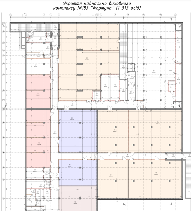 У майбутньому укритті передбачено зонування за віковими групами з урахуванням наявності евакуаційних шляхів. Проте розділення приміщення по класах проєктом не передбачалось.