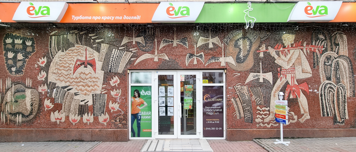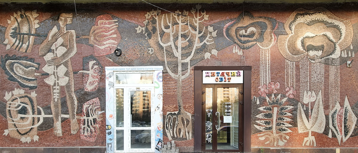 Мозаїчні панно не лише потерпають від вивісок і кондиціонерів — на них постійно клеять оголошення, які складно відмити.