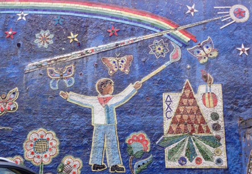 Дитяча художня студія ім. Наума Осташинського розташована на вулиці Антоновича, 1/5А. Мозаїка на її стіні була створена учнями школи в 70-х роках.