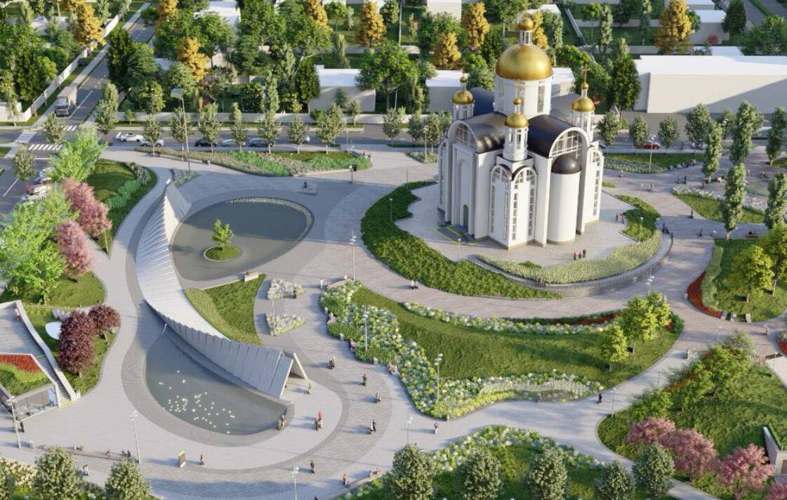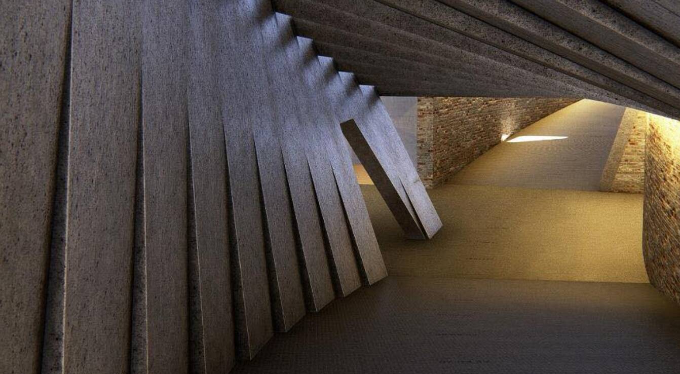 Символічна перевернута форма головного меморіалу занурюватиметься під землю. Поруч розмістять штучну водойму.