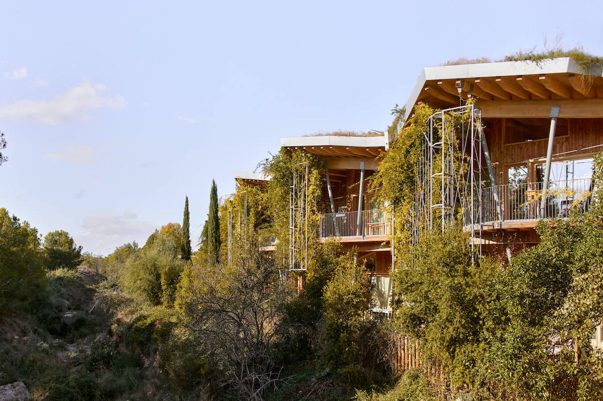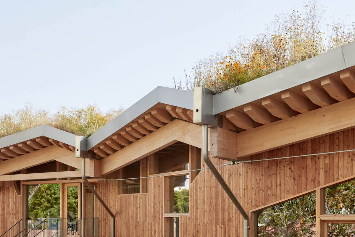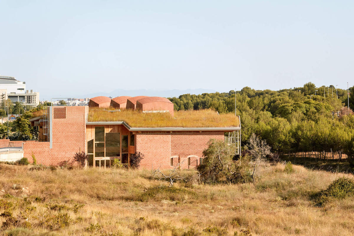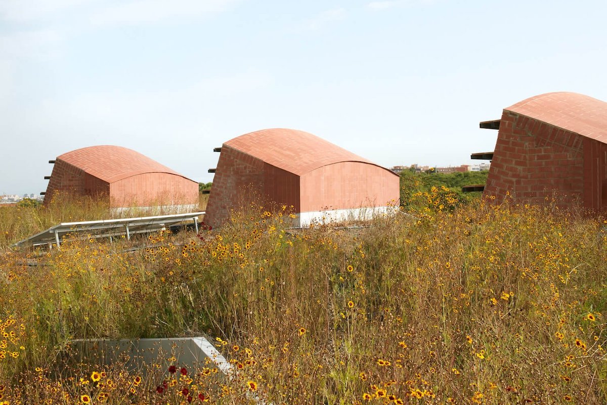 Архітектори використали глиняну плитку, періфоровану цеглу та дерево як головні матеріали. Бетон використали лише для фундаменту, а сталь — для опор. Дахи засадили рослинами.