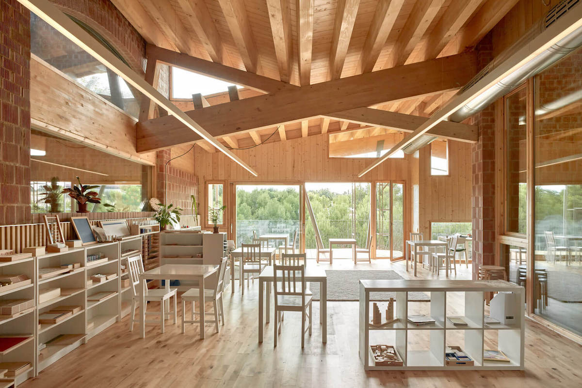 «Тут немає ані підвісної стелі, ані облицювання, ані технічних поверхів — нічого не приховано, — зазначають проєктувальники. — Відкрита цегла слугує структурою, перегородкою та оздобленням, приймаючи свою природну текстуру та недосконалості. Таким чином, сама будівля стає освітнім інструментом».