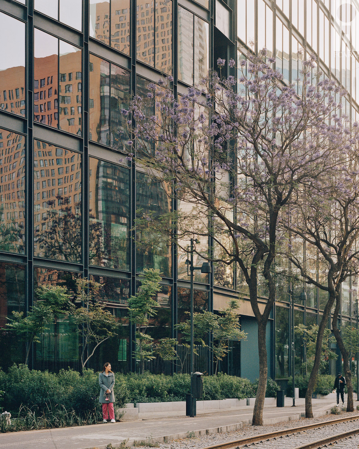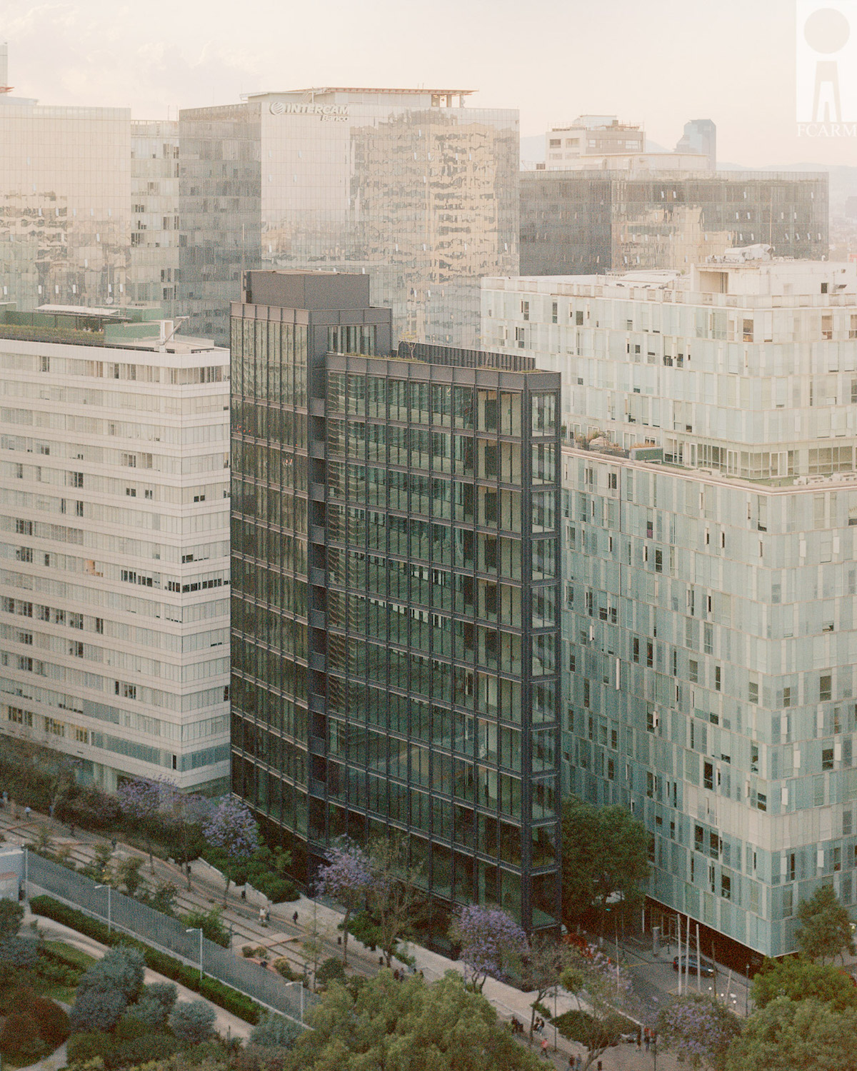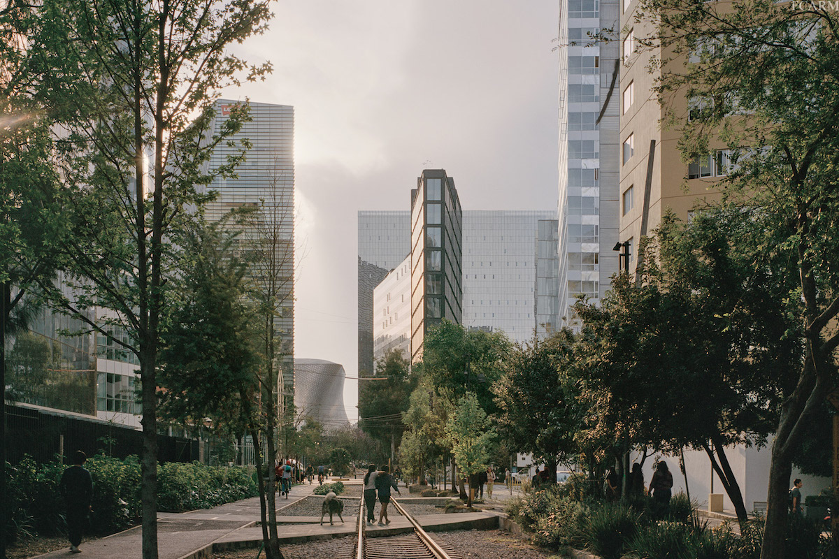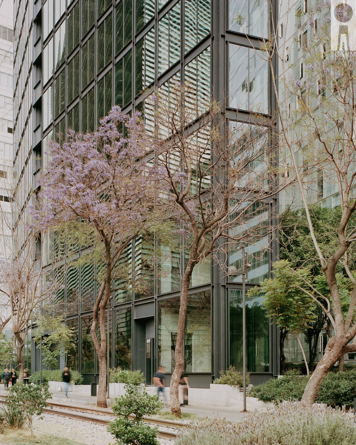 На смузі між хмарочосом і колією знайшлося місце для площі, яку вимостили світлою бетонною плиткою та засадили деревами. Компанія Petróleos Mexicanos, яка володіє трубами під цією ділянкою, погодилася на таке доповнення — натомість архітектори передбачили можливість легко знімати плити мощення у разі потреби поремонтувати труби.