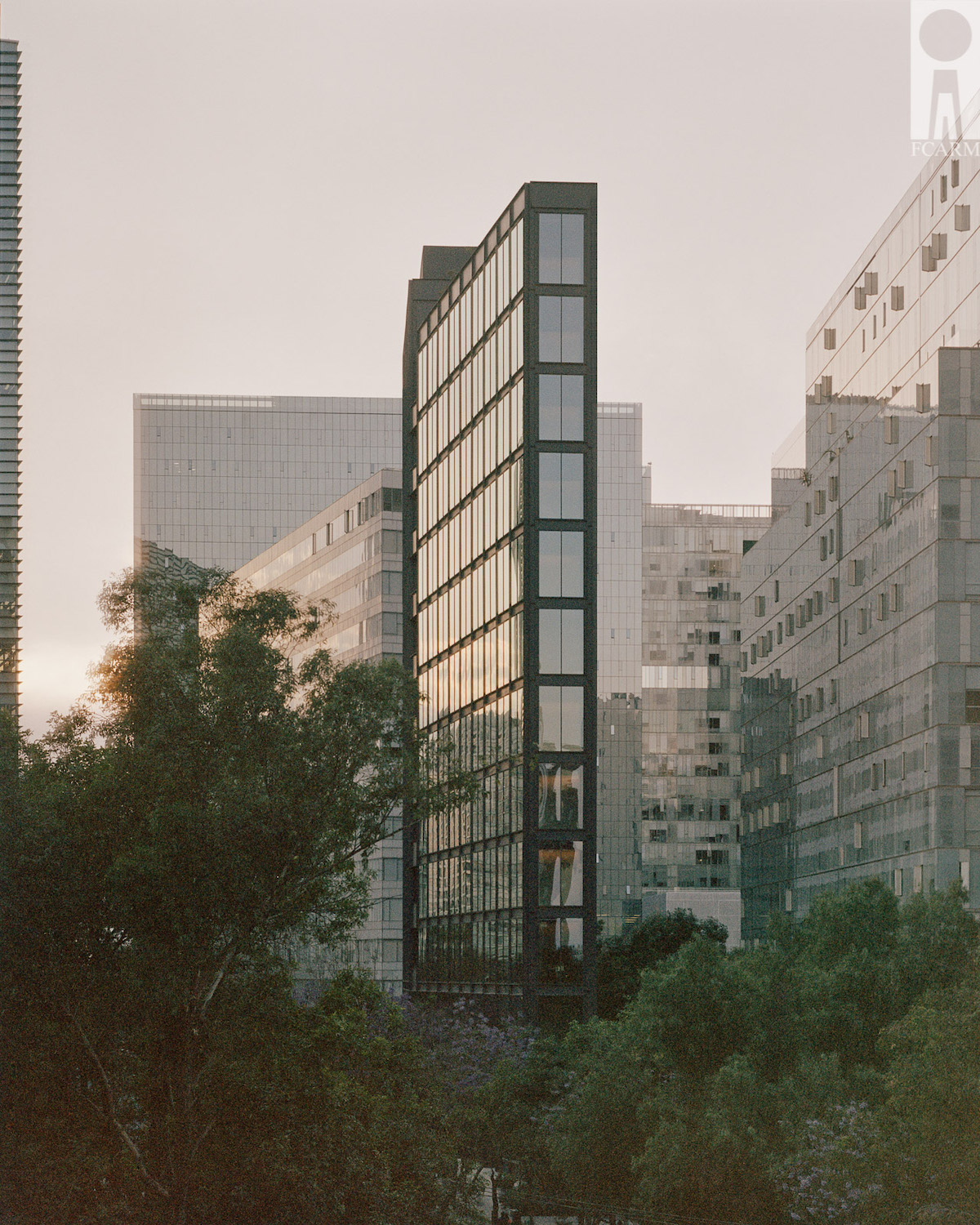 У Мехіко діють суворі норми на будівництво паркомісць. Проєктувальники мали вирішити, як вмістити паркінг на 126 автомобілів під такою вузькою будівлею. Пандуси чи ліфти не помістилися б. Рішенням стала роботизована система, яка розподіляє автівки на 13 рівнях.
