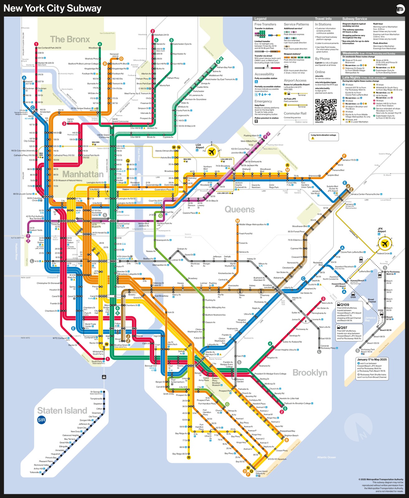 На початку квітня 2025 року MTA офіційно прийняла модифіковану версію карти метро. Нова карта зберігає кольори основних ліній попереднього варіанту. Вона має білий фон, чорні точки для станцій та горизонтальні мітки для кращої читабельності.