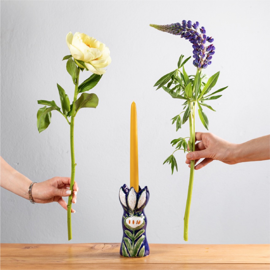 До колекції «Квіти Поліни» увійшли вишиті рушник і скатертина, керамічні підвіски, підсвічники, свічки ручної роботи з бджолиного воску.