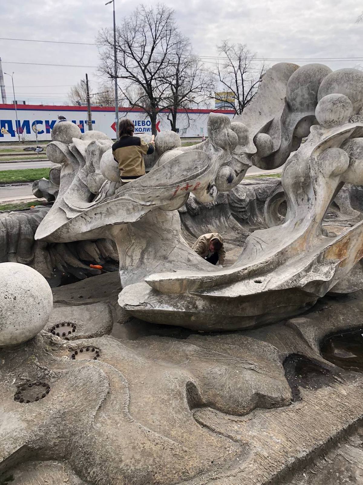 Група киян очистила скульптурну композицію «Водограй» на Троєщині, повідомила дослідниця монументального мистецтва Ельміра Еттінгер.