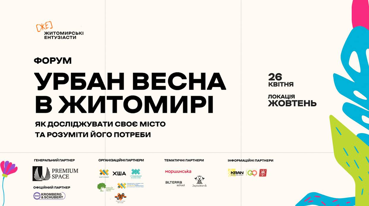 Форум організовує команда ГО «Житомирські Ентузіасти» — молоді, але досвідчені урбаністи, дизайнери, культурні менеджери та дослідники. До ініціативи вже приєдналися партнери, серед яких компанія Premium Space, що підтримала форум та вірить у важливість участі бізнесу у формуванні комфортного міського середовища.