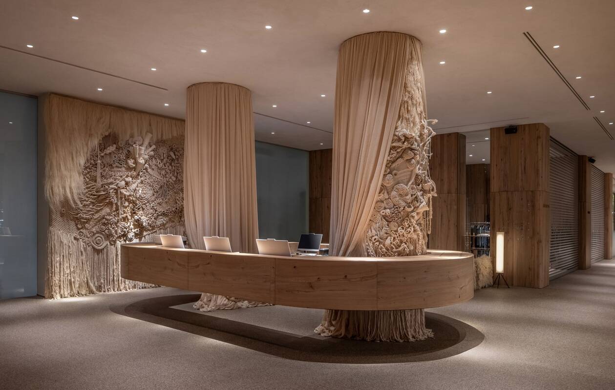 Для Mountain Residence такою ідеєю стали карпатські міфи та легенди. Команда втілила це бачення через використання натуральних матеріалів, щоб забезпечити тактильний зв’язок з природою. Так, у проєкті реалізували дев’ятиметрового Чугайстера, очеретяного Вітролома, лісове панно з макраме та хвилі з лози.