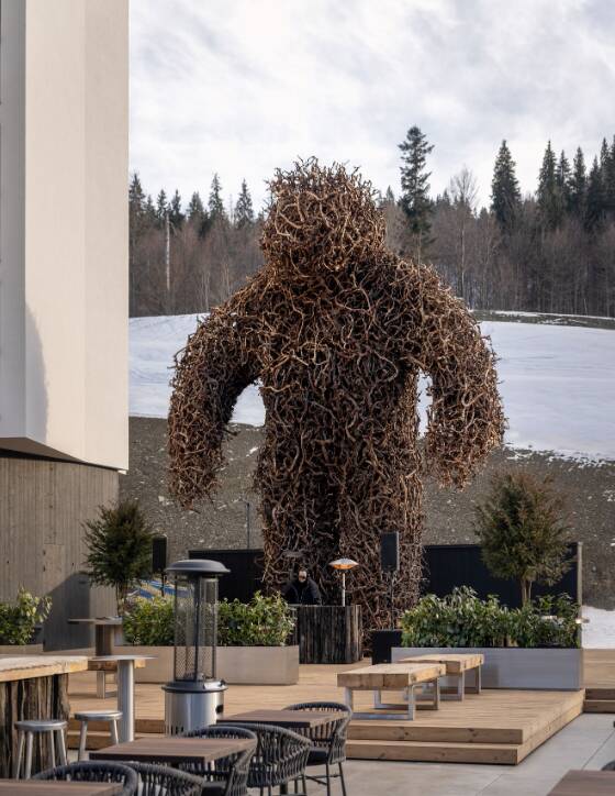 YOD Group розробила дизайн для готелю в Буковелі з 9-метровим Чугайстером та очеретяним Вітроломом