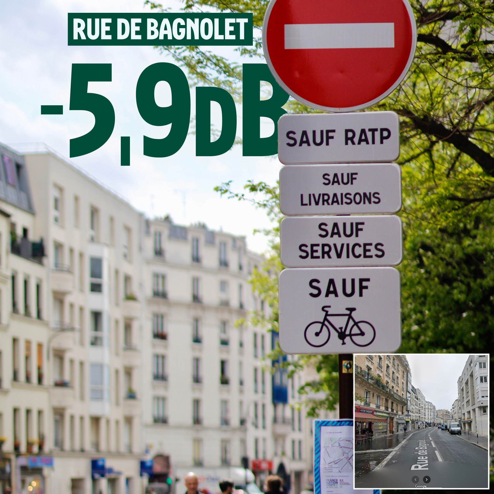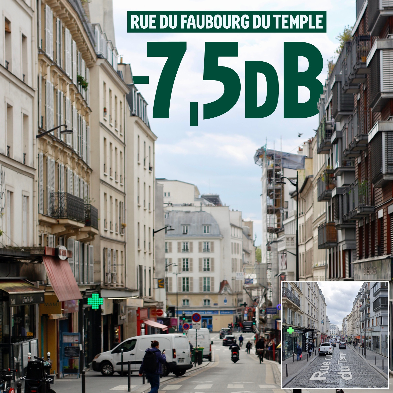 Давід Белльяр поділився інфографікою, яка показує, як вдалося знизити рівень шуму в різних частинах міста. Наприклад, на вулиці Фобур дю Темпль, що в 10-му та 11-му округах, шум зменшився на 7,5 дБ. Вулиця Оберкемпф у 11-му окрузі знизила шум на п’ять дБ. Вулиця де Баньоле стишилася на майже шість дБ, а Площа Каталонії — на понад три дБ.