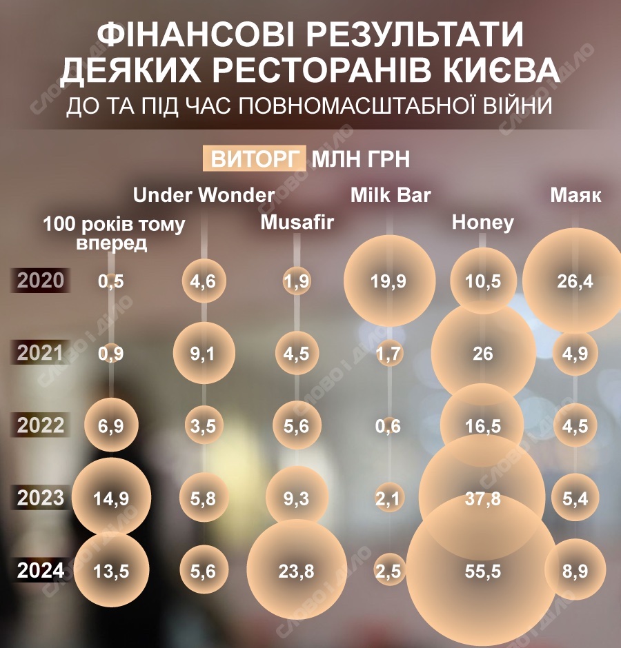 Як зросли доходи шести популярних ресторанів Києва під час пандемії та війни: інфографіка