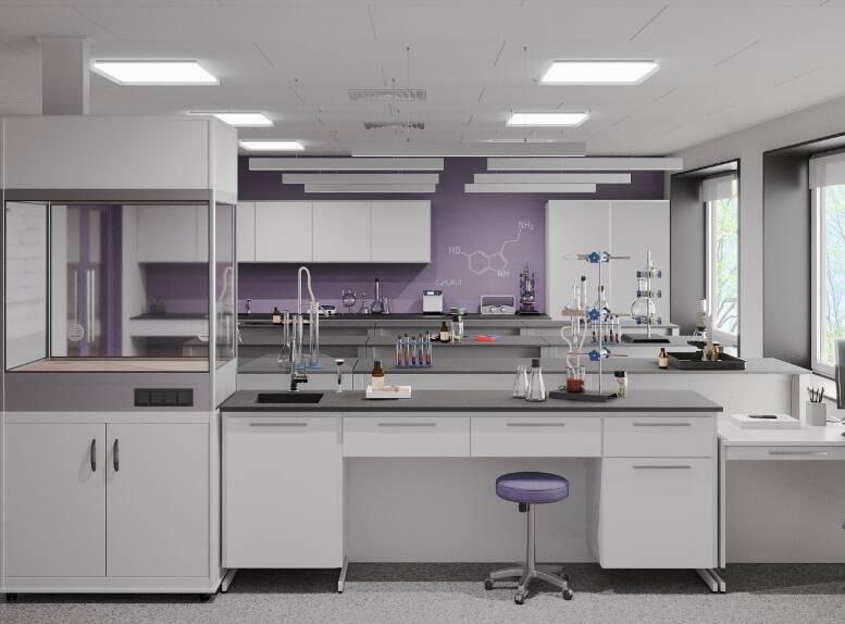 Кабінети повинні бути оснащені необхідними меблями (столи, стільці з регулюванням висоти та нахилу), демонстраційним обладнанням, такими як дошки, екрани, фліпчарти, проектори, а також лабораторними столами та спеціальними системами для роботи з хімічними, фізичними і біологічними матеріалами. Там має бути природне освітлення. Передбачено встановлення систем безпеки, таких як датчики диму, вогнегасники, а також спеціальні приміщення для зберігання небезпечних матеріалів.