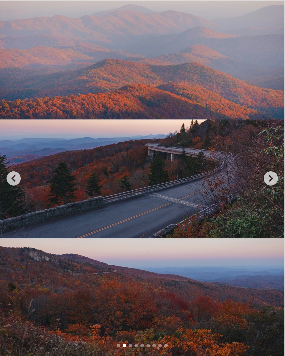 Найбільш популярним у користувачів інстаграму виявився американський Блю-Рідж: по 832 фото на кожен із 755 кілометрів маршруту. Він проходить штатами Вірджинія та Північна Кароліна і сполучає національні парки Шенандоа та Грейт-Смокі-Маунтінс.