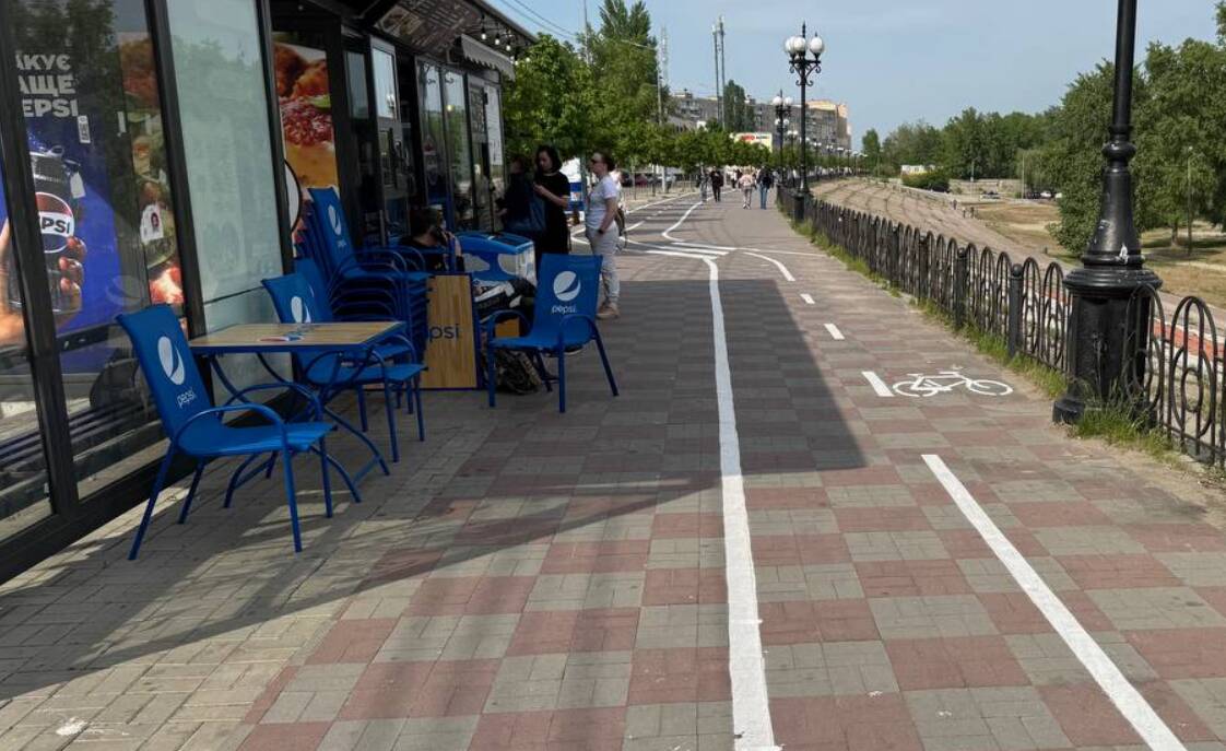 Раніше на набережній не було чіткого розділення потоків, що уповільнювало рух велосипедистів. А тепер, коли велосипедисти будуть рухатися швидше, пішоходи, як і раніше, йтимуть по «велодоріжці» (як видно на фото), що може призвести до конфліктів. Окрім того, там немає жодних знаків, які вказують на існування «велодоріжки».