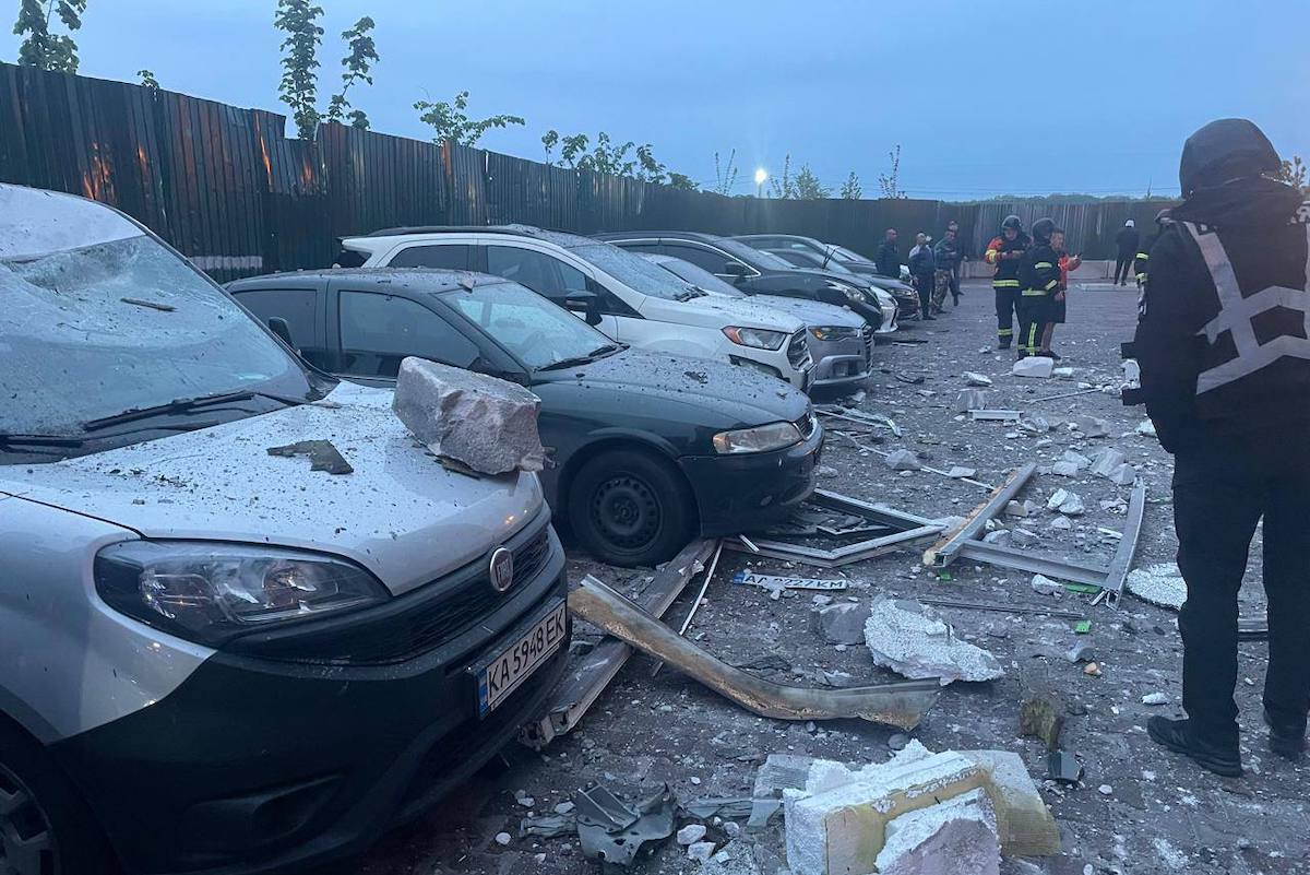 Також уламками збитої цілі пошкоджено фасад ще однієї новобудови, три приватних будинки та 18 автомобілів.