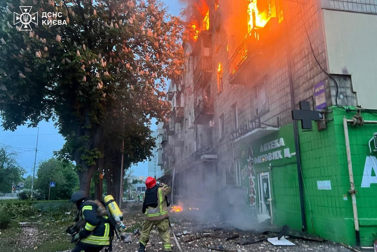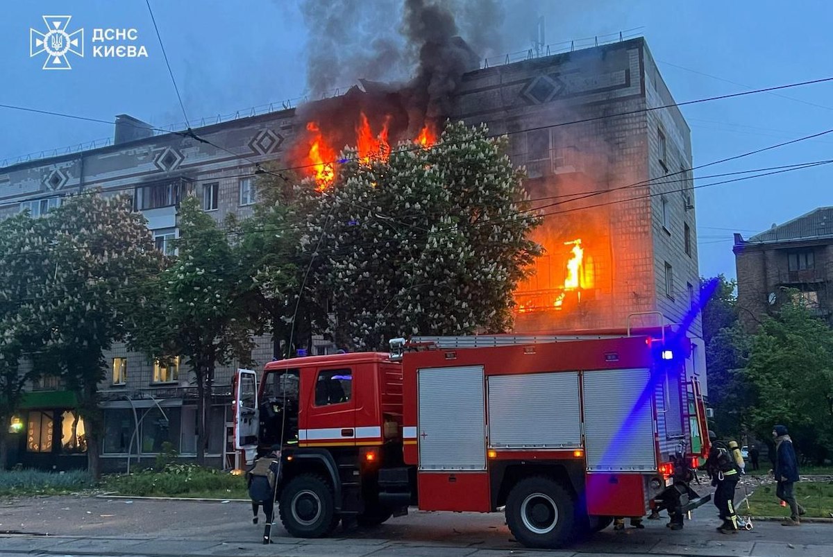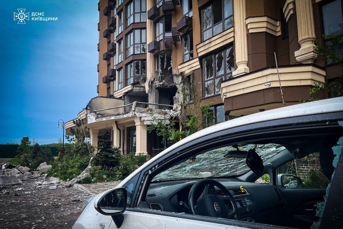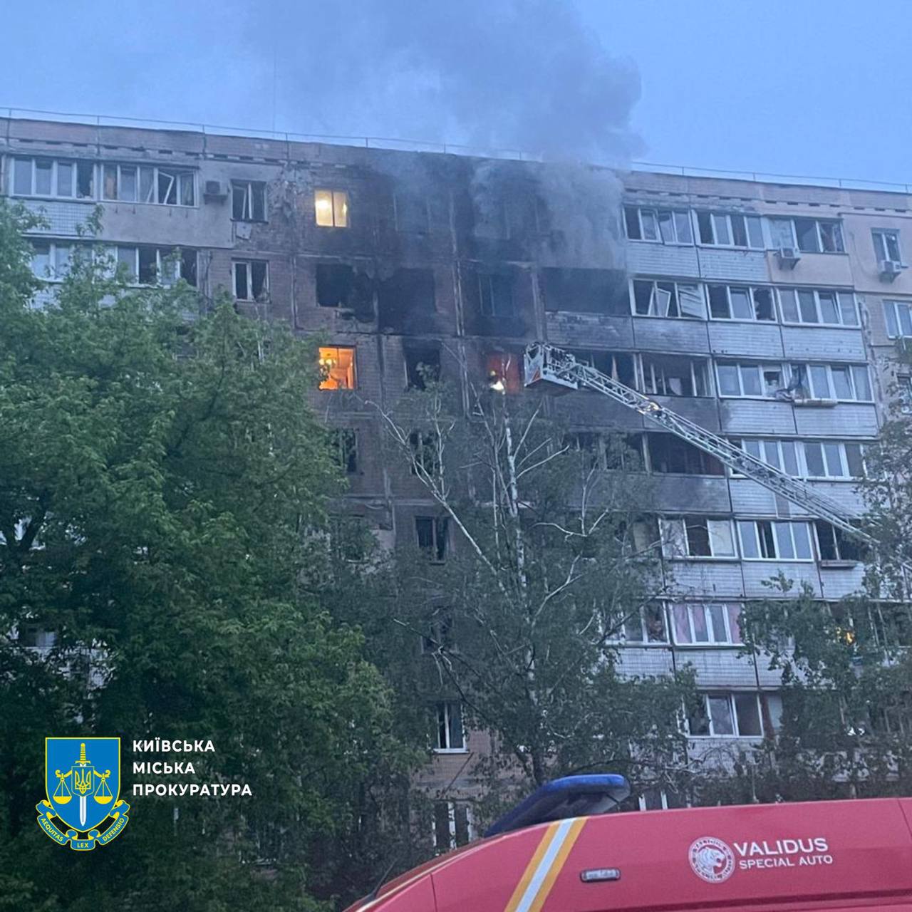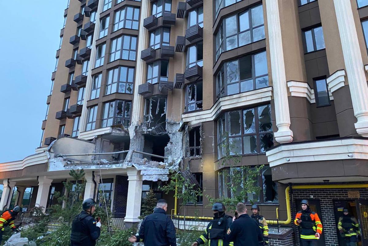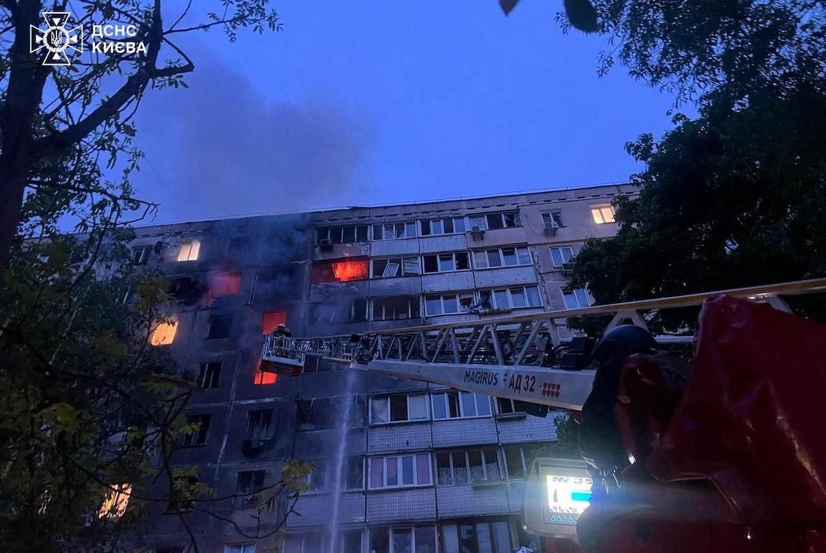 У Софіївській Борщагівці внаслідок атаки безпілотників пошкоджено десятиповерхівку. Горіли другий і третій поверхи. Будівля ЖК «Софія Резиденс» ще не введена в експлуатацію, тож постраждалих немає.