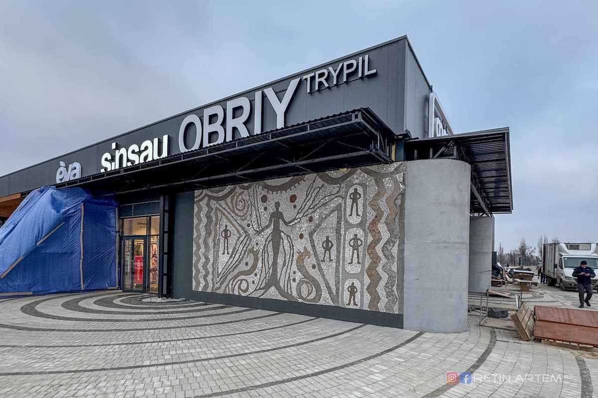 Розквіт мозаїк як монументального мистецтва в України припав на радянські роки, однак все частіше у публічному просторі з’являються й сучасні твори в цій техніці. Один із останніх прикладів — мозаїка на фасаді торгового центру Obriy Trypil у місті Українка на Київщині.