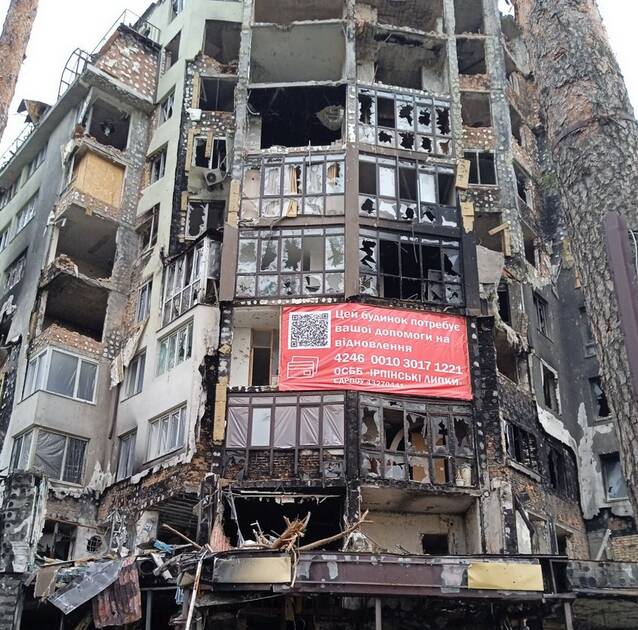 Станом на кінець квітня 2025 року Ірпінь відновлений на 80%. Однак понад 150 будинків, серед яких багатоповерхівка на Гостомельському шосе, 24/1, досі не відновлені. У березні 2022 року російський літак Су-25 атакував Ірпінь, пошкодивши зокрема і ЖК «Ірпінські Липки». Пізніше сталася пожежа, і через обстріли пожежники не могли загасити вогонь. Частину квартир пошкодило, а інші були знищені повністю.