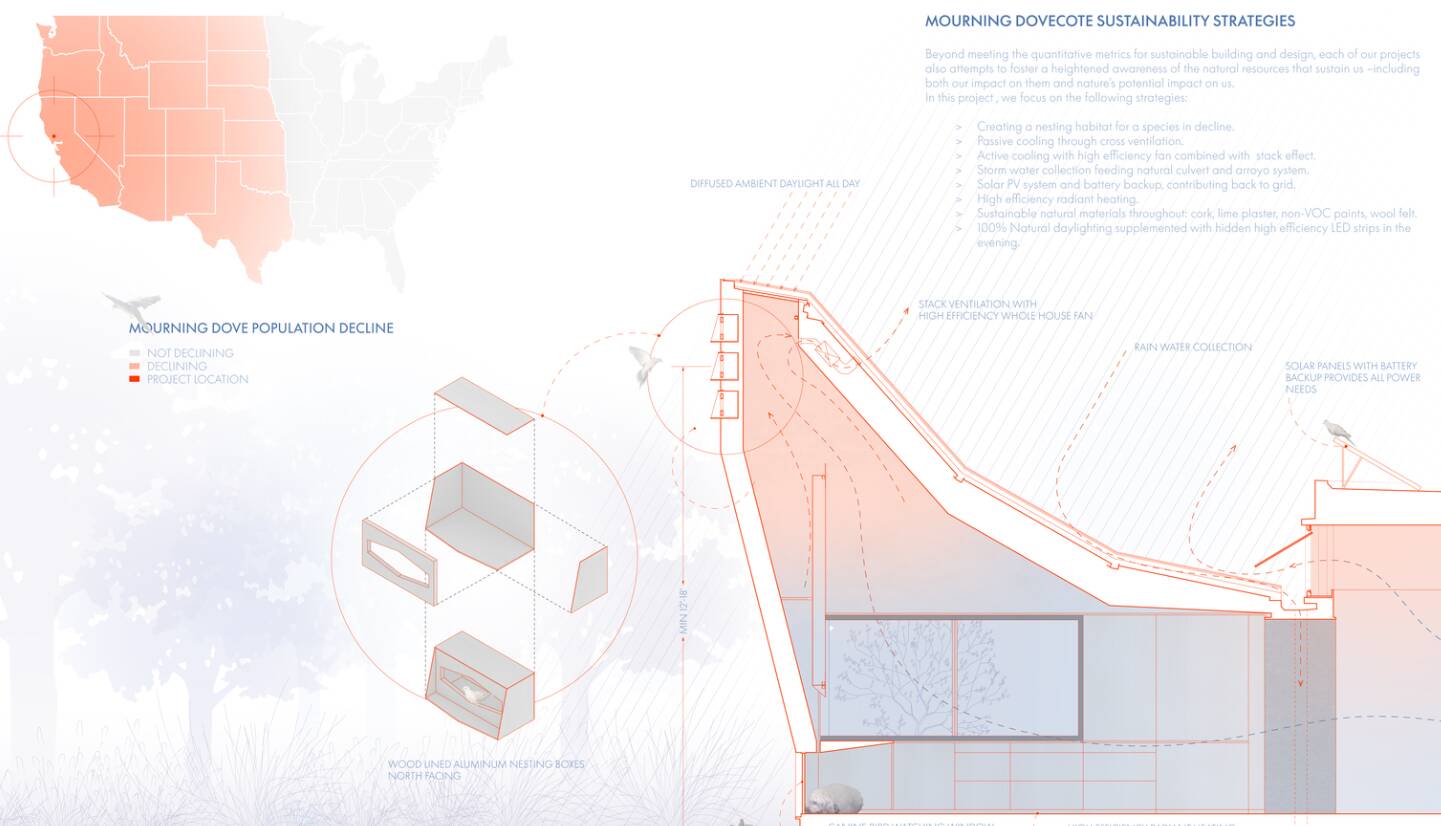Каліфорнійський архітектор розробив проєкт «голубника» у своєму будинку — це студія площею 390 кв. футів, натхненна видом численних пар Зенаїд північних (Zenaida macroura), що мешкають на ділянці.