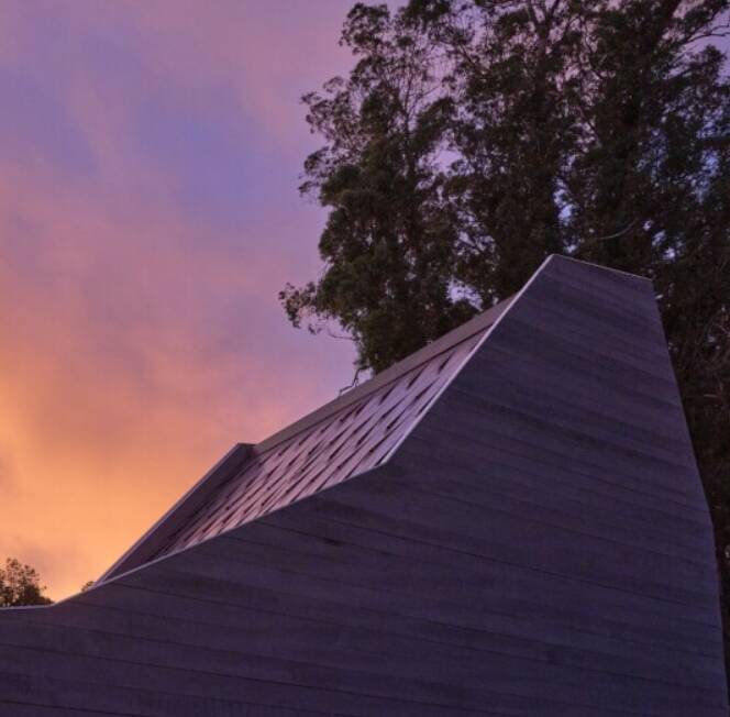 Дах, вирізаний лазером з металу у вигляді пір’я, допоміг зменшити відходи при виготовленні. Обрізки кедрового сайдингу використали для створення вхідного мостика до студії.