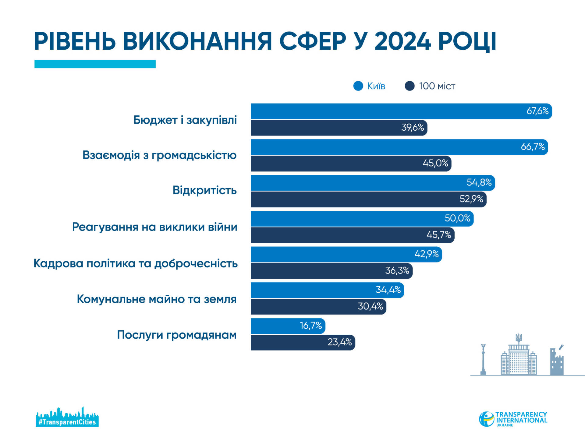 Київ посів 26 місце серед 100 міст у рейтингу прозорості, складеним Transparency International Ukraine за даними 2024 року.