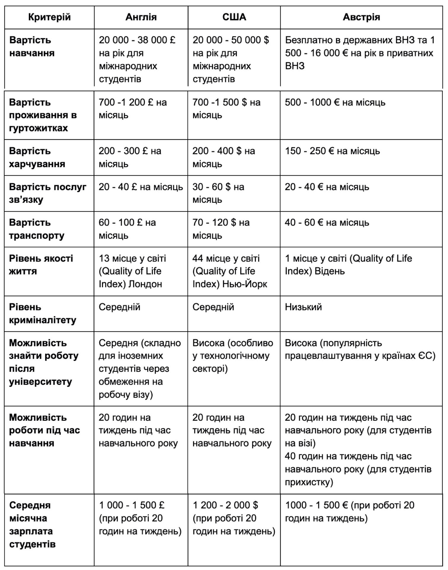 Аналітики «Дивись ширше» порівняли умови вступу та навчання для українців у різних країнах і вважають, що найкомфортніші умови в цьогоріч надає Австрія. Перепоною може стати мовний бар’єр, але 15 австрійських закладів пропонують українцям англомовні програми.