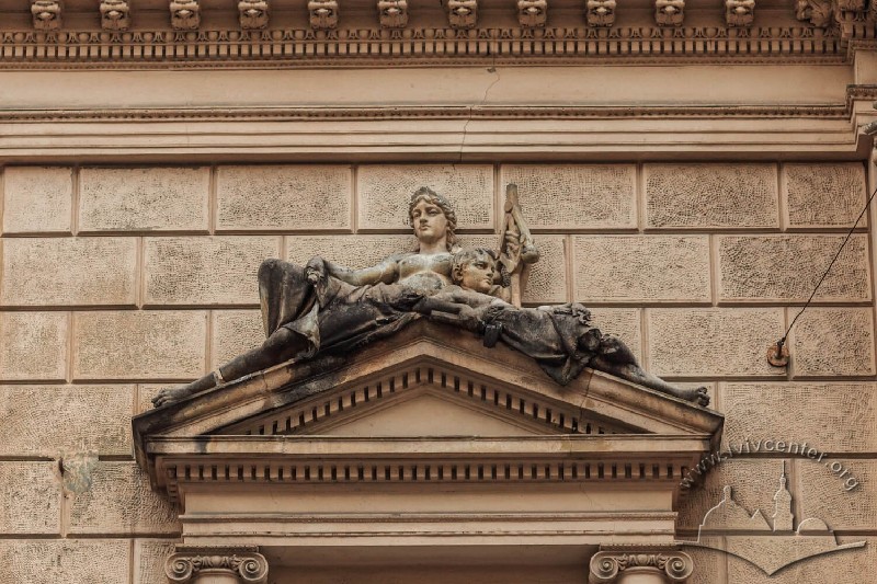 Будівлю увінчує фігура крилатого Гермеса (Меркурія), робота скульптора Леонардо Марконі. У 2010 році львів’яни зібрали кошти та домоглися реставрації Меркурія.