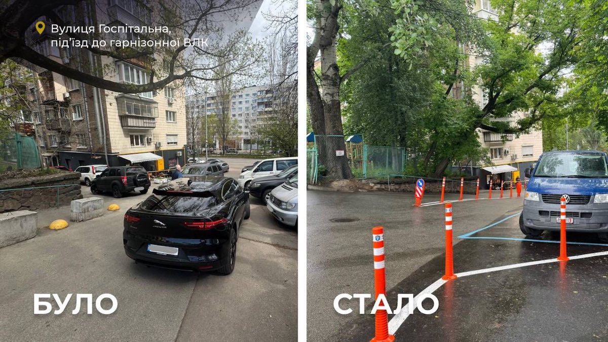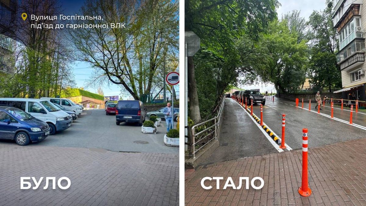 На Печерську звільнили для пішоходів шлях до військового госпіталю (фото до і після)