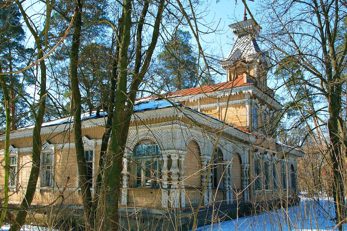 Найвірогідніше, дерев’яний дачний будинок звели у 1900-1903 роках. Одноповерхова дача з різьблениими арками всередині мала сім великих та одну малу кімнату.