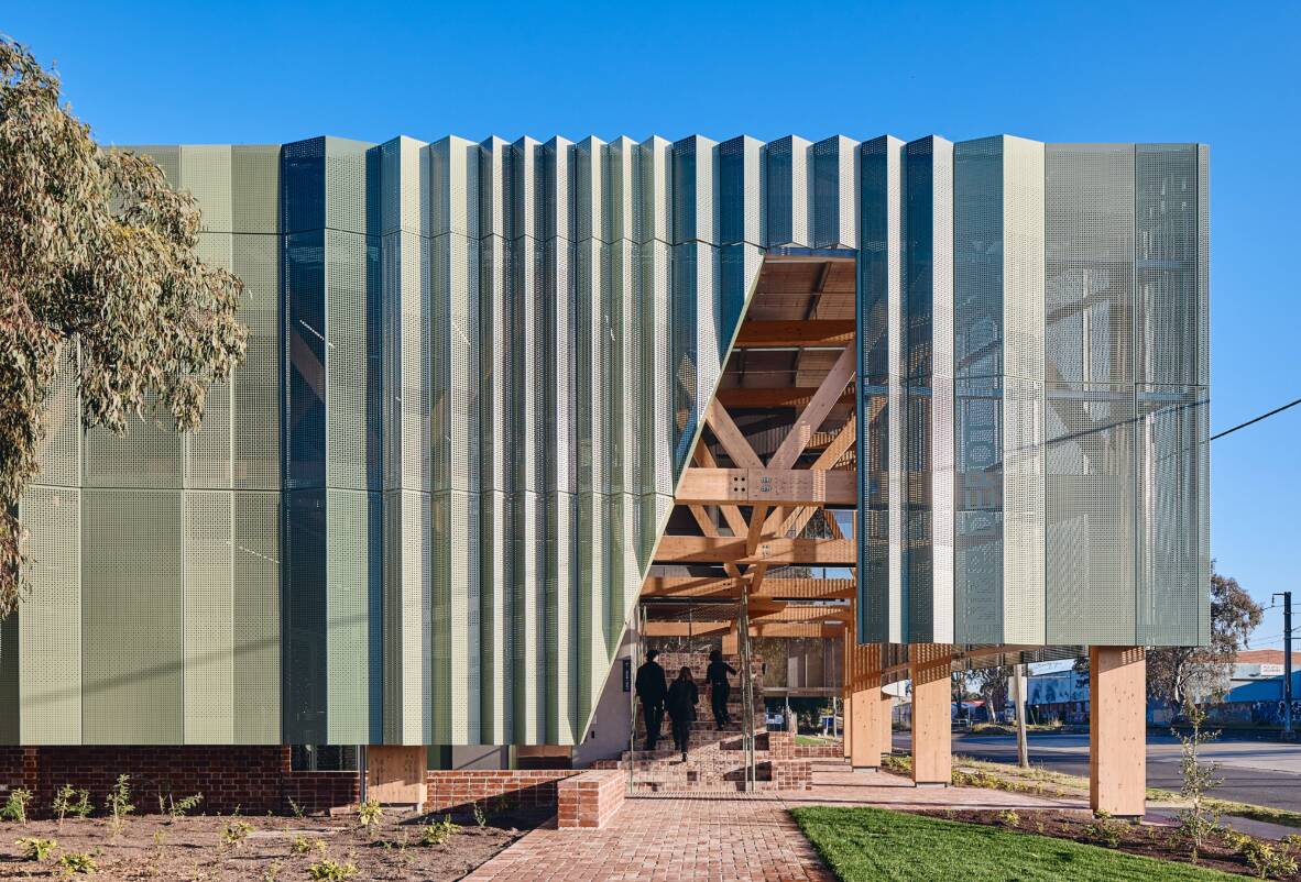 Депо Northern Memorial Park у Гленрої, Мельбурн, від Searle x Waldron Architecture отримало нагороду за найкращий комерційний та багатоквартирний екстер’єр. Суддя прокоментував, що світло, яке грає на цій зовнішній оболонці, створює глибину та об’єм, подібні до тонкої мереживної вуалі.