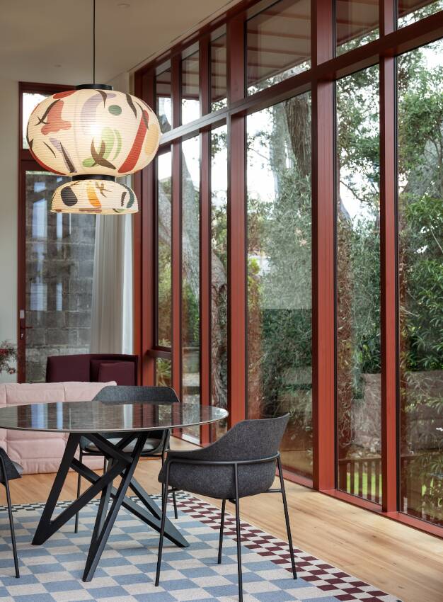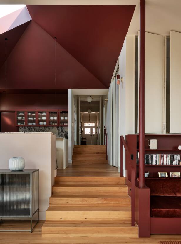 Для Lava Flow, резиденції на краю вулканічної прірви, Pac Studio вибрали глибокий землисто-малиновий відтінок Dulux, який демонструє «чудову стриманість кольорів, розуміння простору та точне виконання».