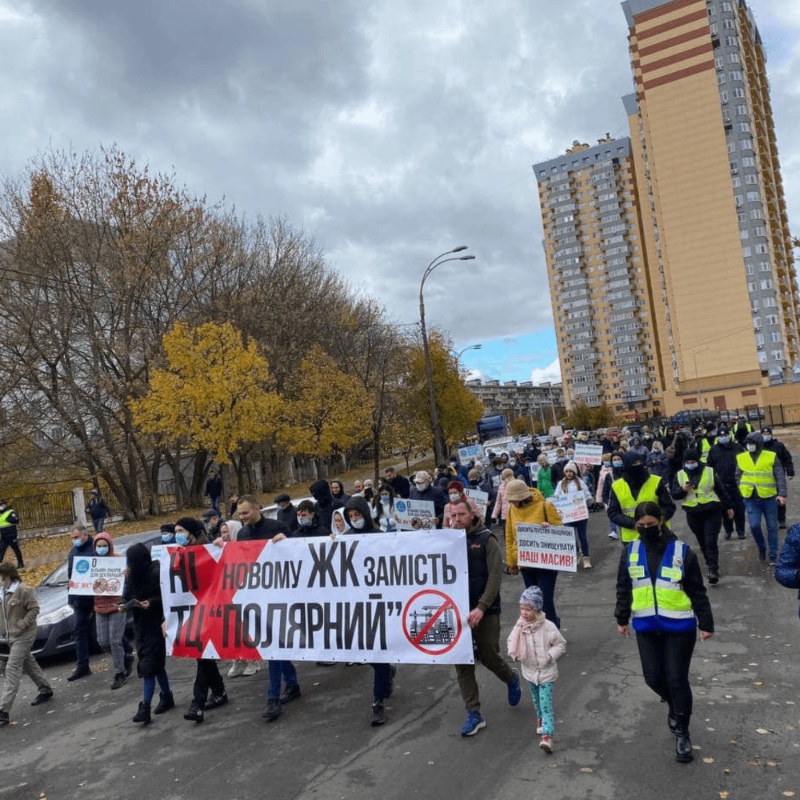 Як тільки у 2021 році з’явилася інформація про плани забудовника звести ЖК, місцевий актив почав мітингувати та направляти різноманітні звернення до міських, державних і правоохоронних органів, зокрема до Київради, ДІАМ, поліції, Департаменту містобудування тощо. Проте, як зазначає Олександр Кучерявий, у відповідь постійно отримували різноманітні «відписки» або інформацію про відсутність підстав для припинення будівництва.