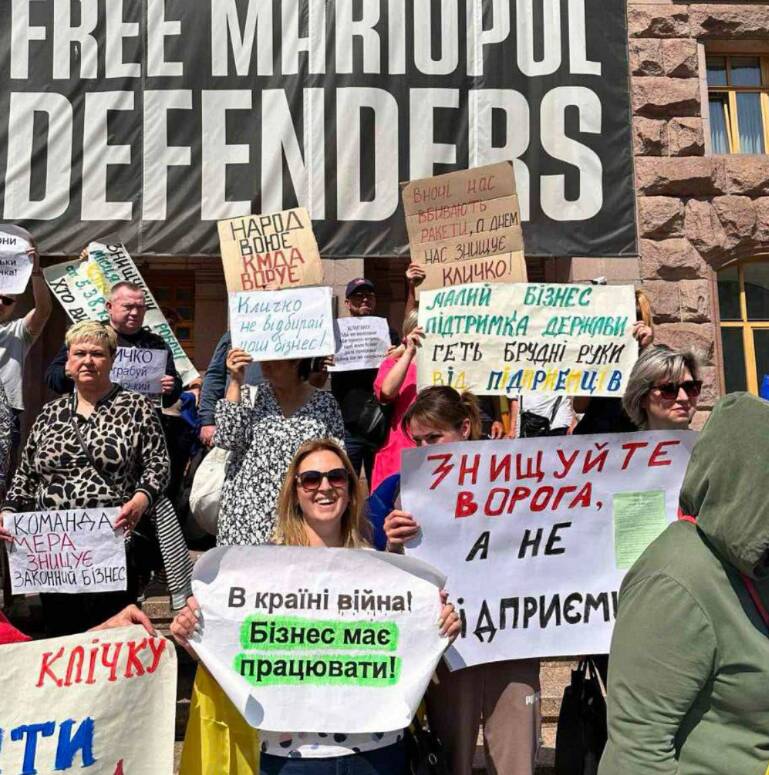 «Забороняю Кличку знищувати мій бізнес» – підприємці мітингують під КМДА, бо замість їх МАФів встановили нові
