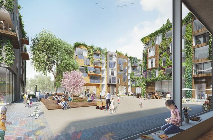 Тут збудують енергоефективні будинки й заохочуватимуть альтернативні способи пересування, такі як каршерінг і мобільні пункти, щоб зменшити потребу в парковках. Тож цей район буде без автомобілів і матиме хаби для різних видів транспорту. Крім того, цей квартал збільшить кількість зелених зон у місті.