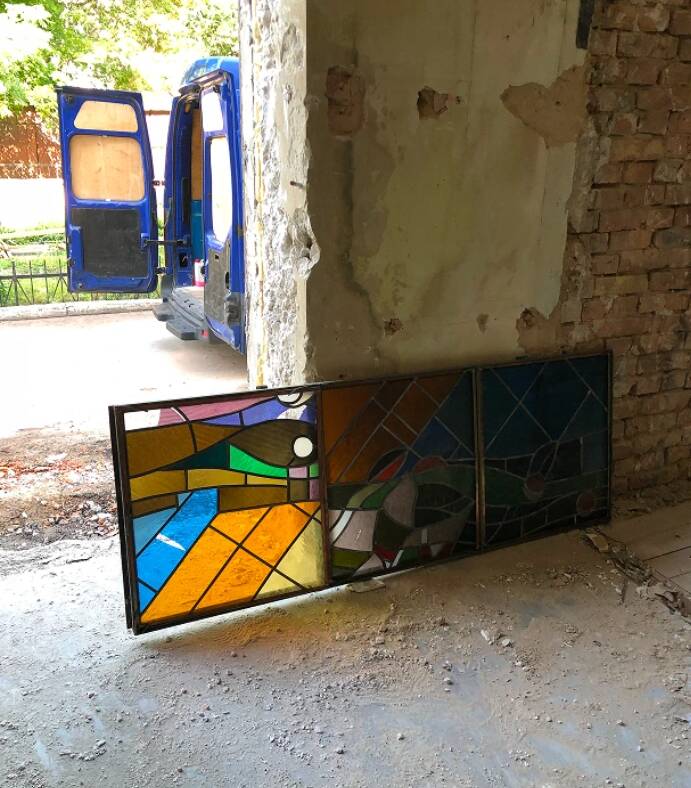 Під час ремонту будівлі нові власники не планували зберігати вітражі, тож активісти забрали їх і передали до Академії мистецтв імені Бойчука, де їх реставрують.