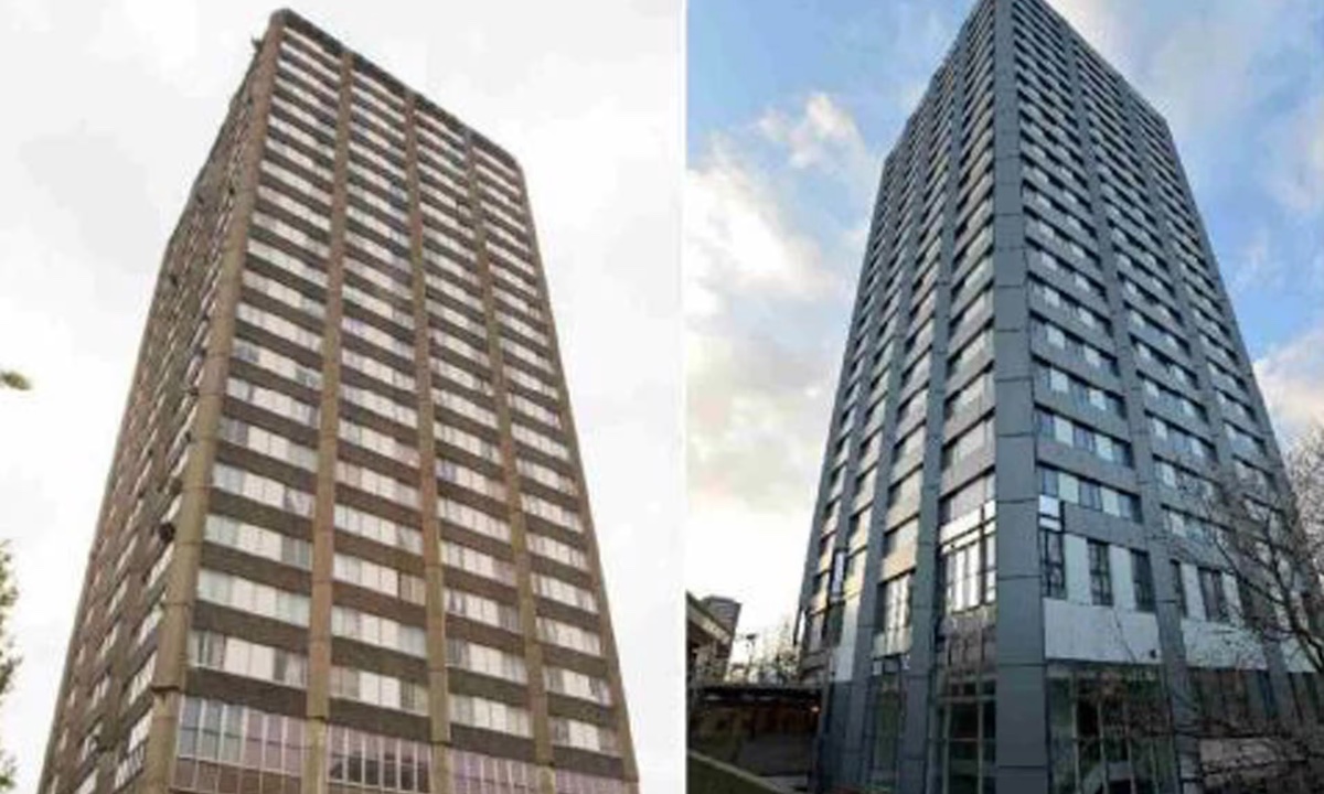 Міська влада вирішила косметично приоздобити будинок, щоб він не настільки вибивався з-поміж навколишньої забудови та не впливав на вартість дорогої нерухомості. У 2016 році на бетонний фасад навісили сандвічеві панелі.
