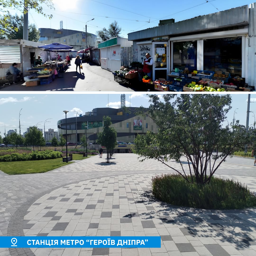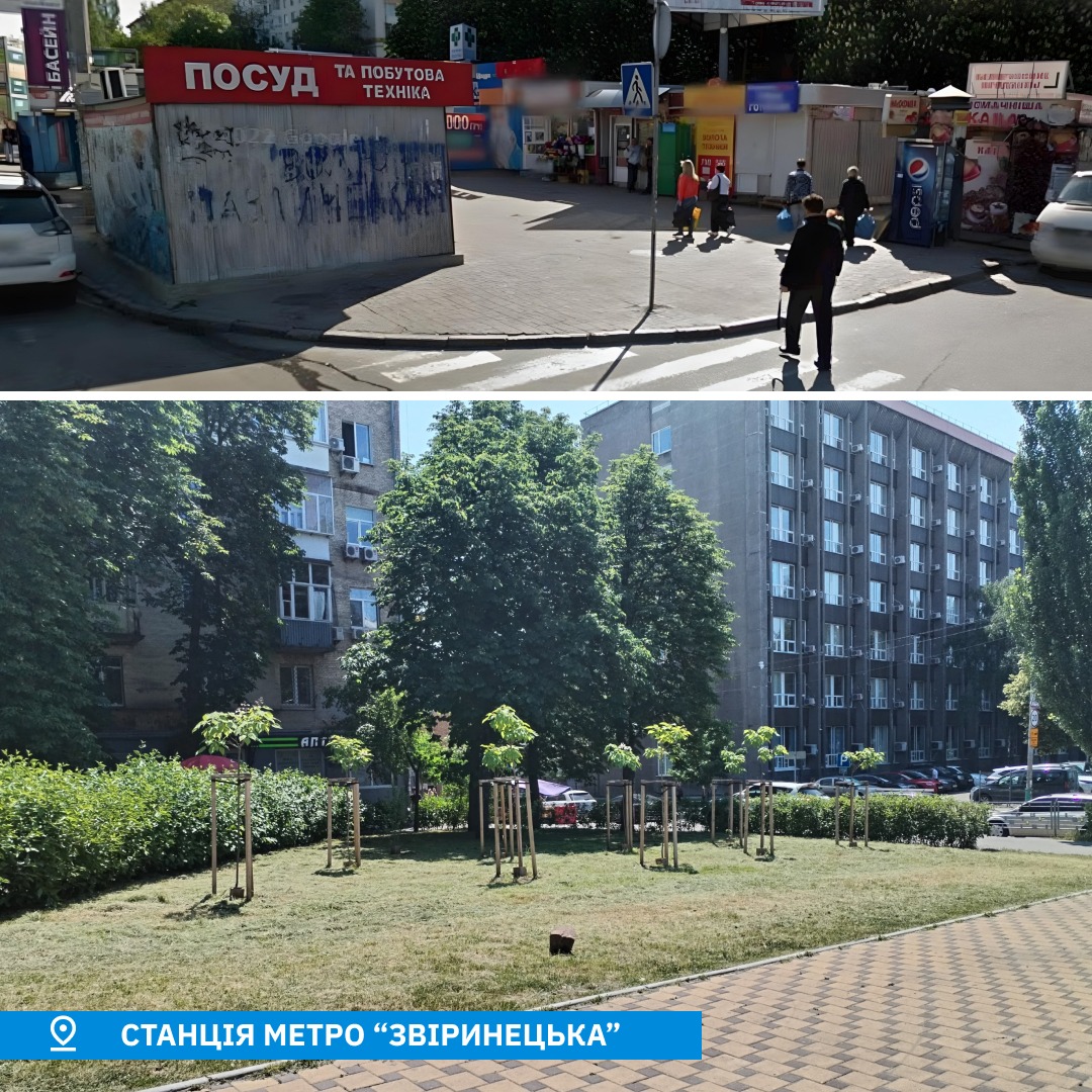 Замість рядів кіосків у низці локацій облаштували сквери та публічні простори. Тиждень тому Київблагоустрій публікував фото до і після.