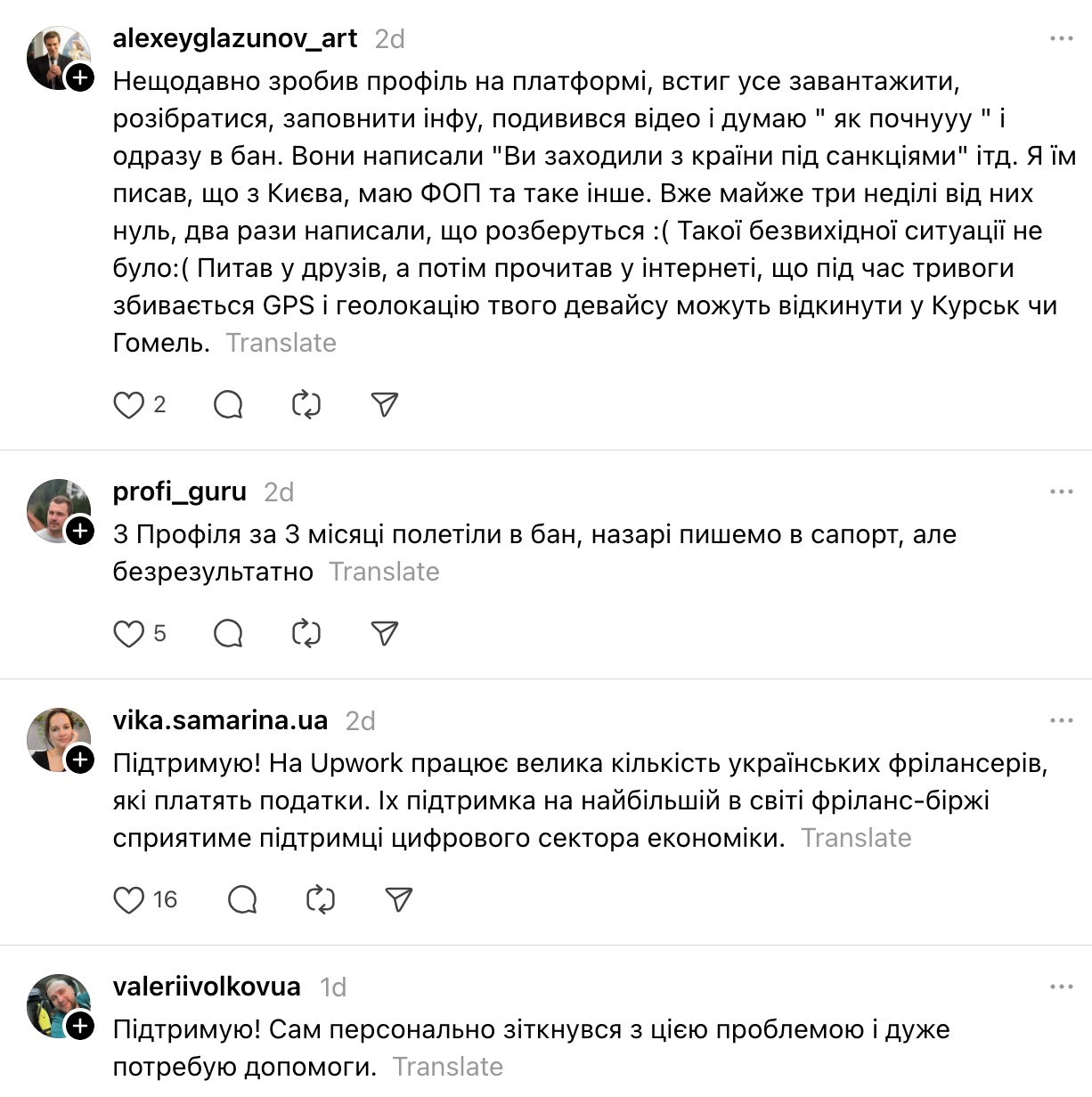 За словами Козака, зараз жодної регіональної підтримки Upwork в Україні немає, її закрили.