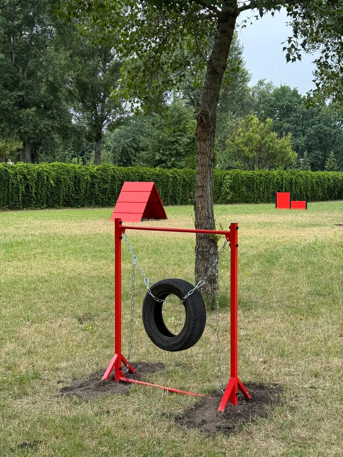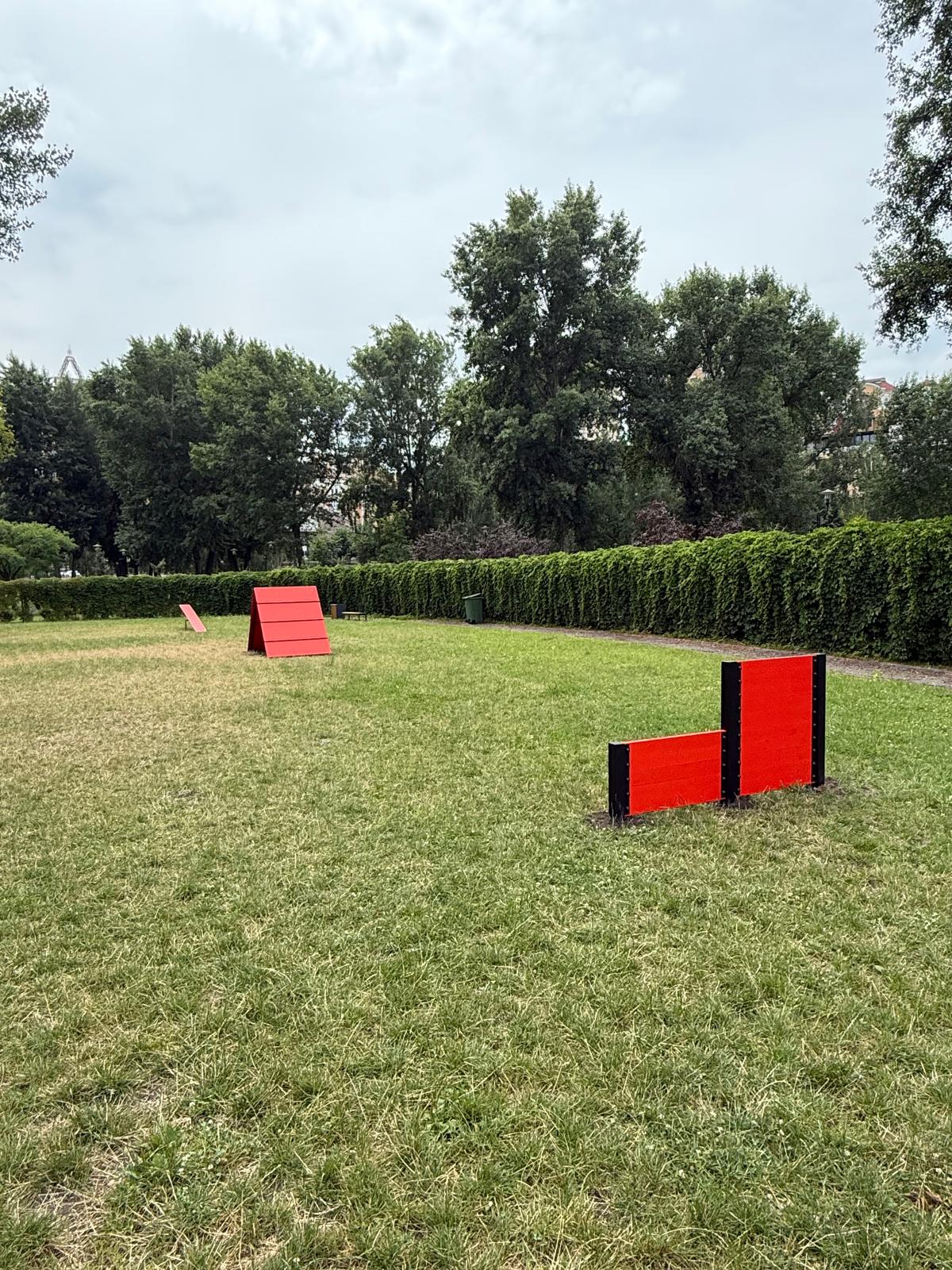 На ньому є конструкції для дресирування та вправ для тварин, а також смітники та лави для людей. Територію огородили озелененим парканом.