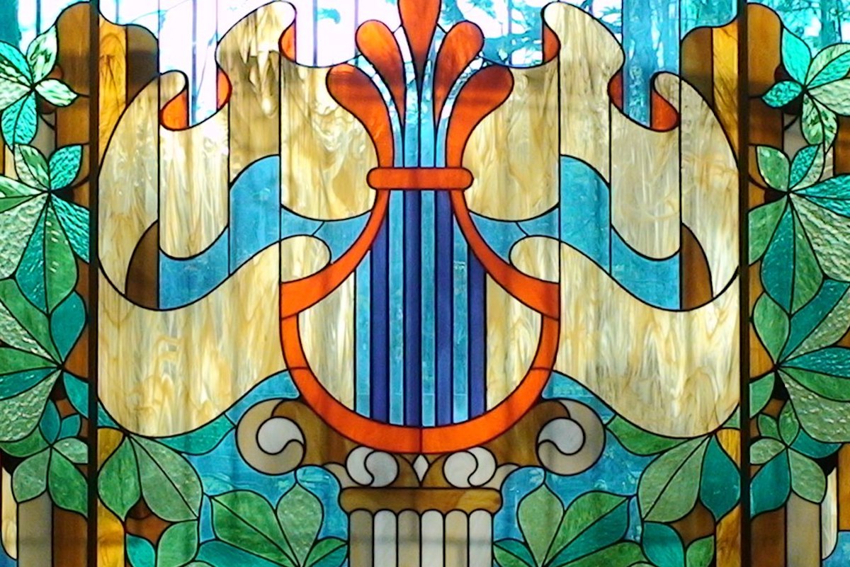 На фотографіях з інтернету видно, що «ліхтар» з орнаментом із каштанів був вмонтований у стелю одного з приміщень музичної школи. На смітнику знайшли лише один фрагмент цього вітражу.