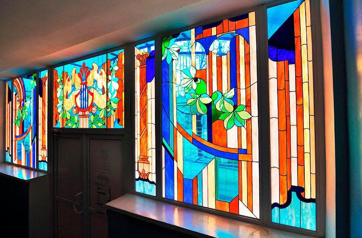 Вітражі створив у 2010 році художник-монументаліст і графік Денис Кутняхов.