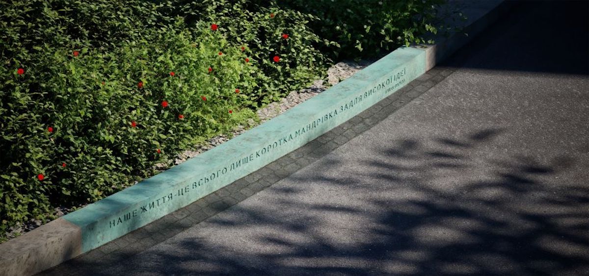 Додатково архітектори пропонують вигравіювати на бордюрі цитату «Наше життя — це всього лиш коротка мандрівка задля високої ідеї».