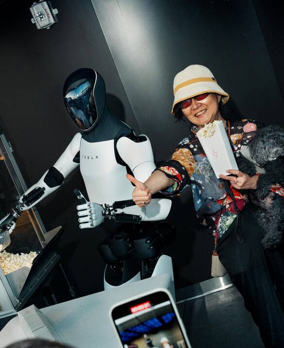 У закусочній також працюють кілька роботів Optimus, так один з яких подав попкорн відвідувачам на відкритті.