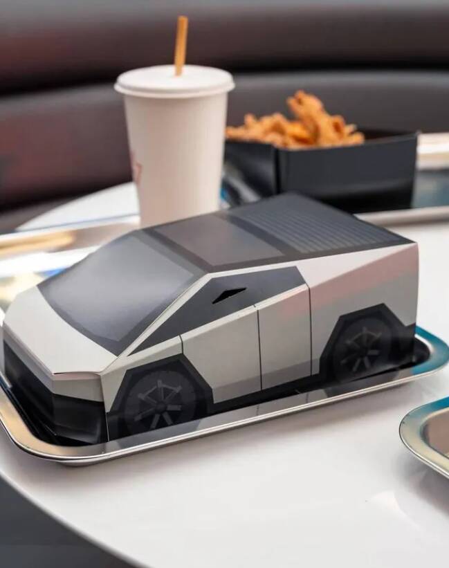 А бургери та сендвічі подають у коробках, стилізованих під Cybertruck.