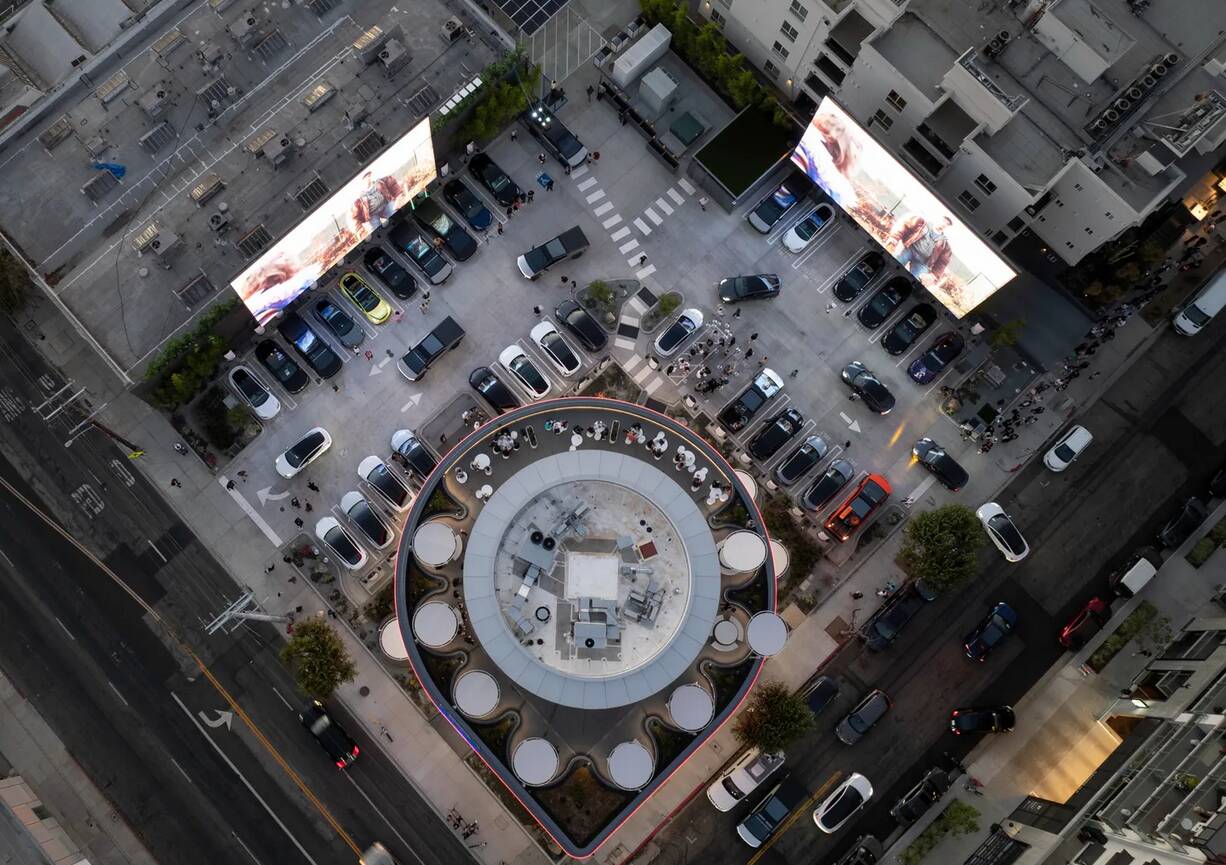 Основною частиною локації в Голлівуді є величезна станція Supercharger з 80 стендами Supercharger v4 та кінотеатр під відкритим небом, який оснащений двома великими 45-футовими LED екранами. Клієнти можуть замовляти їжу безпосередньо зі своїх Tesla, а оплата здійснюється автоматично через обліковий запис.