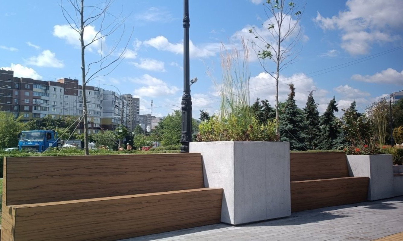 Біля парку Деснянський на Троєщині комунальники встановили вуличні меблі з клумбами — такі конструкції, що мерія називає парклетами, зараз облаштовують у кожному районі Києва.