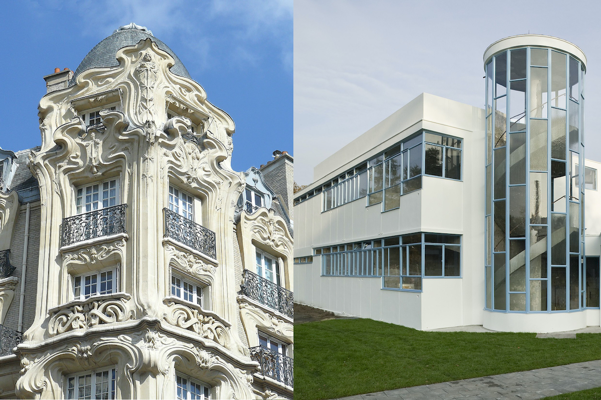 Очевидно, мався на увазі стиль модернізм. Для порівняння, на зображенні ліворуч — модерн (ар-нуво, сецесія), праворуч — модернізм. Однак модернізм й особливо бруталізм справді переживають зараз відродження в сучасній архітектурі.