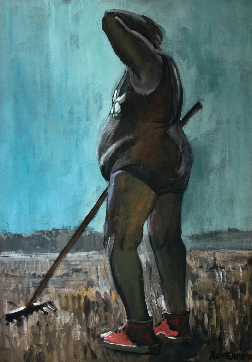 Таким чином, «червона зала» на другому поверсі вокзалу перетворилася на художню майстерню. Тут же Хоменко створить ще одне великоформатне живописне полотно — у формі траншеї завдовжки 30 метрів. Його виставлятимуть у PinchukArtCentre як імерсивну інсталяцію.