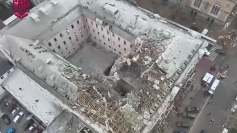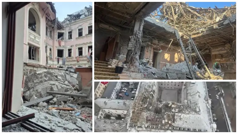 П’ятизірковий готель — пам’ятка архітектури у стилі Відродження з елементами бароко, збудована у 1898 році за проєктом архітекторів Олександра Бернардацці й Адольфа Мінкуса. 31 січня будівля зазнала серйозних пошкоджень під час ракетної атаки — особливо дворові фасади і покрівля західного та північного корпусів, де кроквяна система була повністю зруйнована, було знищено частину інтер’єрів.